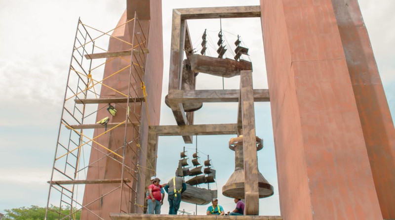 Por instrucciones de la Gobernadora Layda Sansores San Román, personal de la Secretaría de Desarrollo Urbano, Movilidad y Obras Públicas (SEDUMOP) lleva a cabo trabajos de mantenimiento integral y conservación del Monumento Escudo de Armas del Estado de Campeche, con el objetivo de preservar en óptimas condiciones este símbolo representativo de la identidad campechana.
